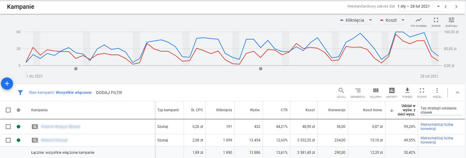 przejście ze strategii ustalania stawek ucpc na maksymalizuj liczbę konwersji
